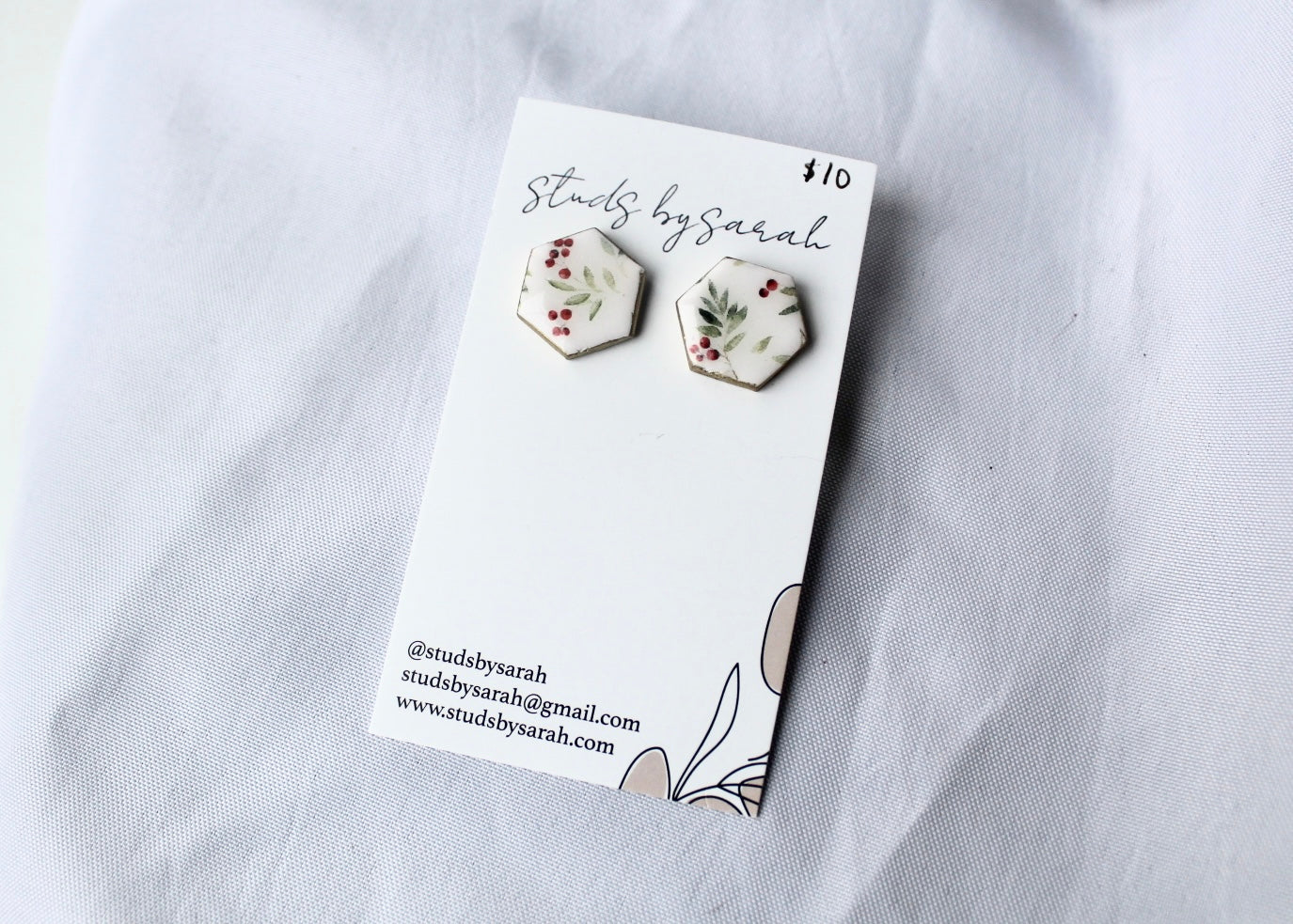 Holly Print Hexagon Studs